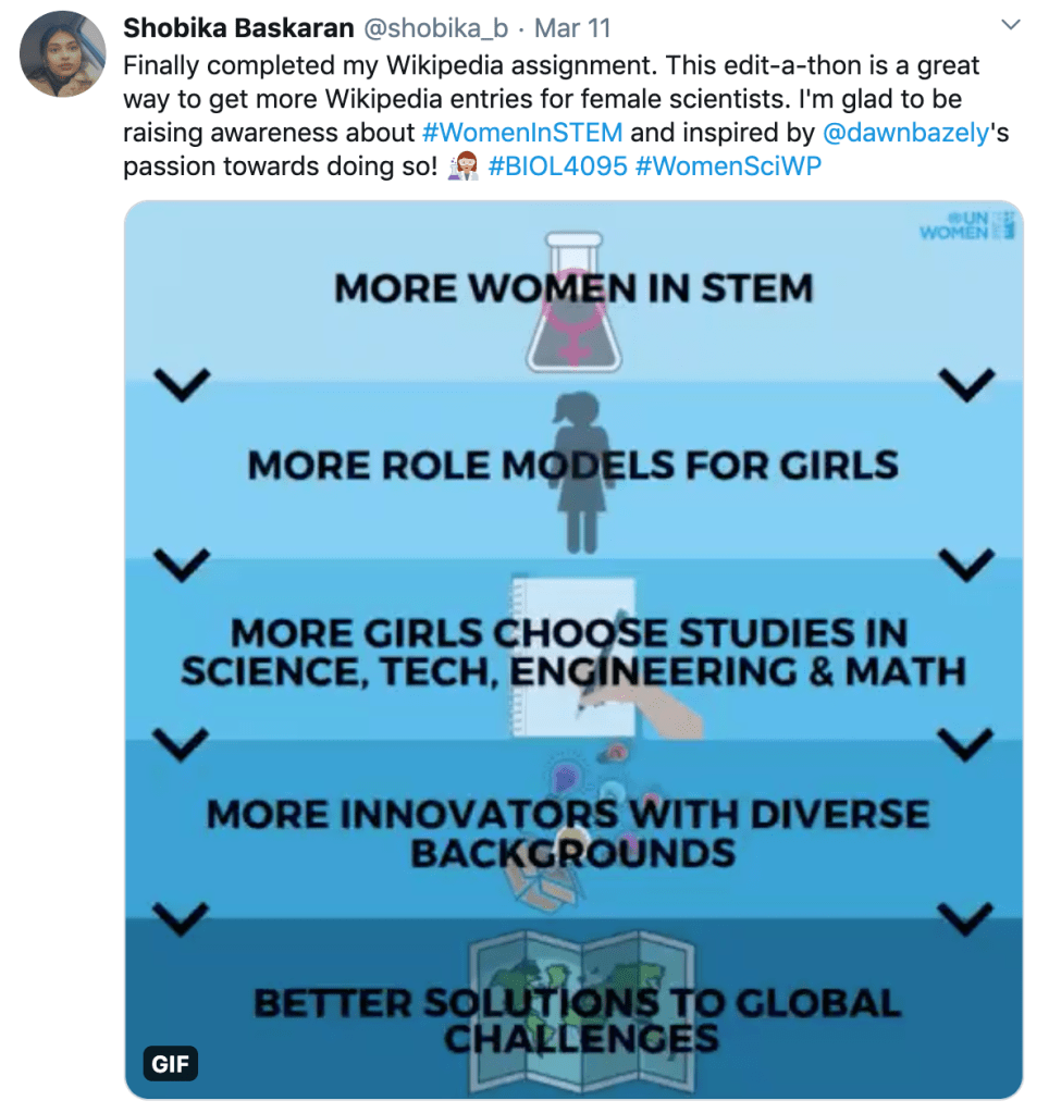 When I saw that the Wikipedia Edit-a-Thon assignment was a part of the course syllabus for Applied Plant Ecology, I was confused. Throughout my academic career, I had been constantly taught that Wikipedia is an unreliable source. However, Dr. Bazely taught me otherwise. As she stated in her three-partedWikipedia Edit-a-Thon Chronicles blog post, she had discovered that pages for those areas of science where she has expertise in are actually very well fact-checked.